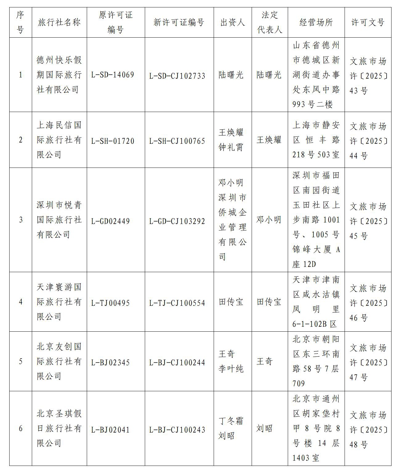 文化和旅游部关于许可旅行社经营出境旅游业务的公告(2025年第八批)