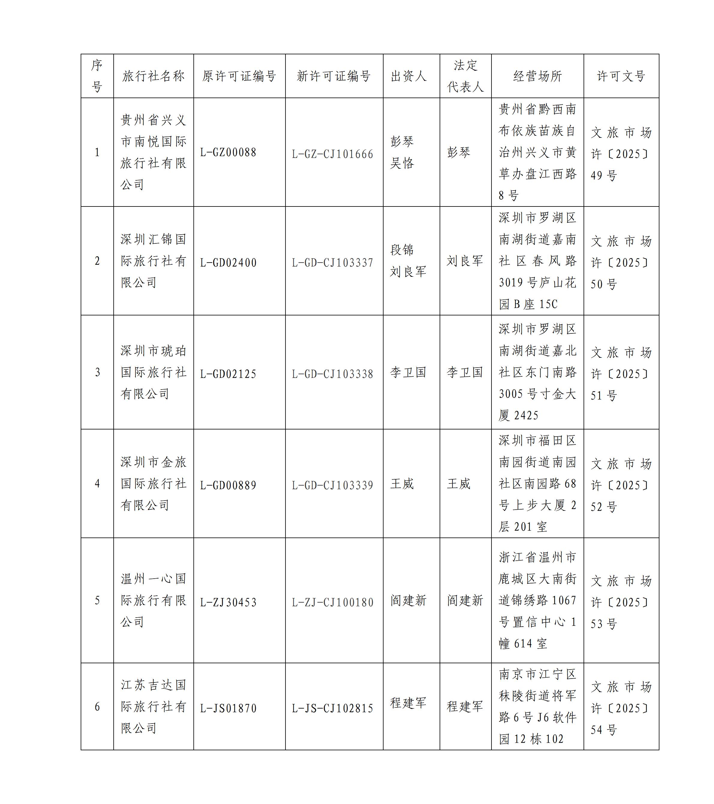 文化和旅游部关于许可旅行社经营出境旅游业务的公告(2025年第九批)