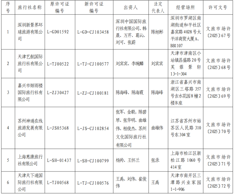 文化和旅游部关于许可旅行社经营出境旅游业务的公告(2025年第十二批)