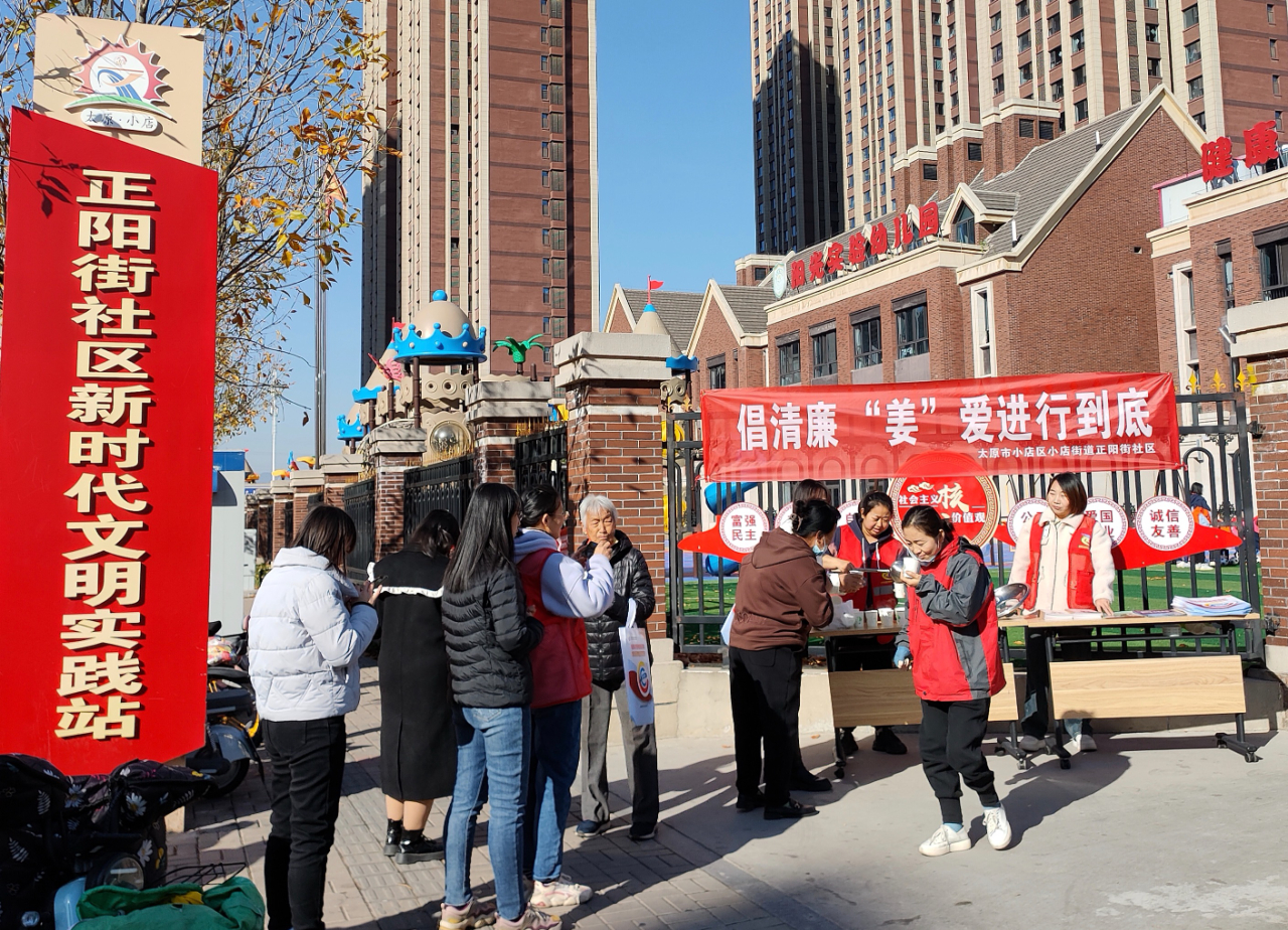 “前两天还挺热,今天就变成最低零下几度了,天气变化太快了。喝杯社区送的免费姜茶,热热的真暖心!”11月7日,路过小店街道正阳街社区的快递小哥接过社区人员递来的姜茶,感激地说道,喝上一口心满意足。当日,这个社区发起“倡清廉,‘姜’爱进行到底”暖心活动,为大家献上热腾腾的姜茶,驱寒保暖。