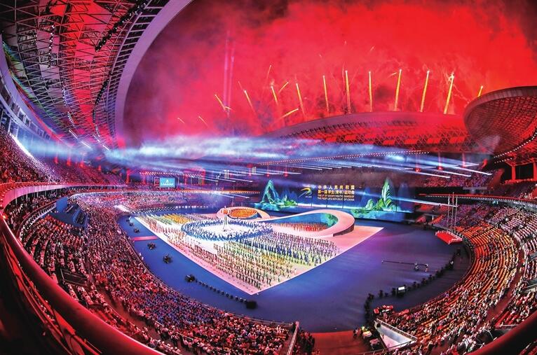 11月5日,中华人民共和国第一届学生(青年)运动会在广西体育中心盛大开幕。来自全国各地101个代表团的近1.8万名运动员相聚壮美广西,共赴青春之约。特派记者宿晓健 南宁摄影报道