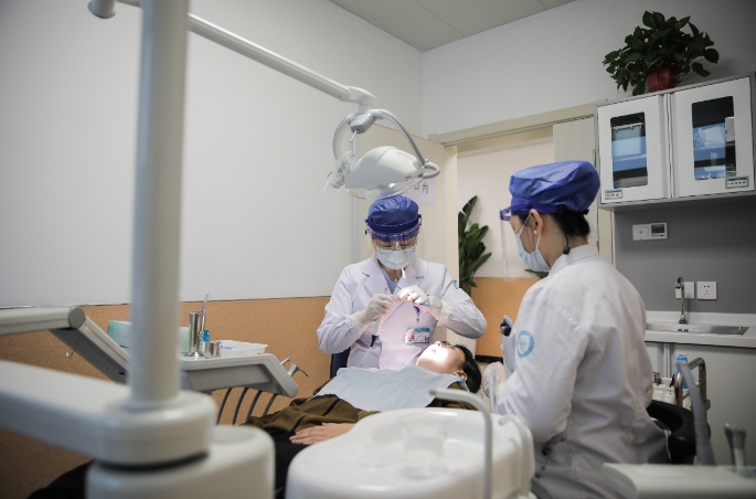 11月17日,刚刚投入使用的省人民医院和平院区口腔科门诊,医务人员正为患者治疗。该门诊依托本部口腔中心,可以为周边居民提供更加优质、高效、便捷的口腔健康服务。王韵菲 摄