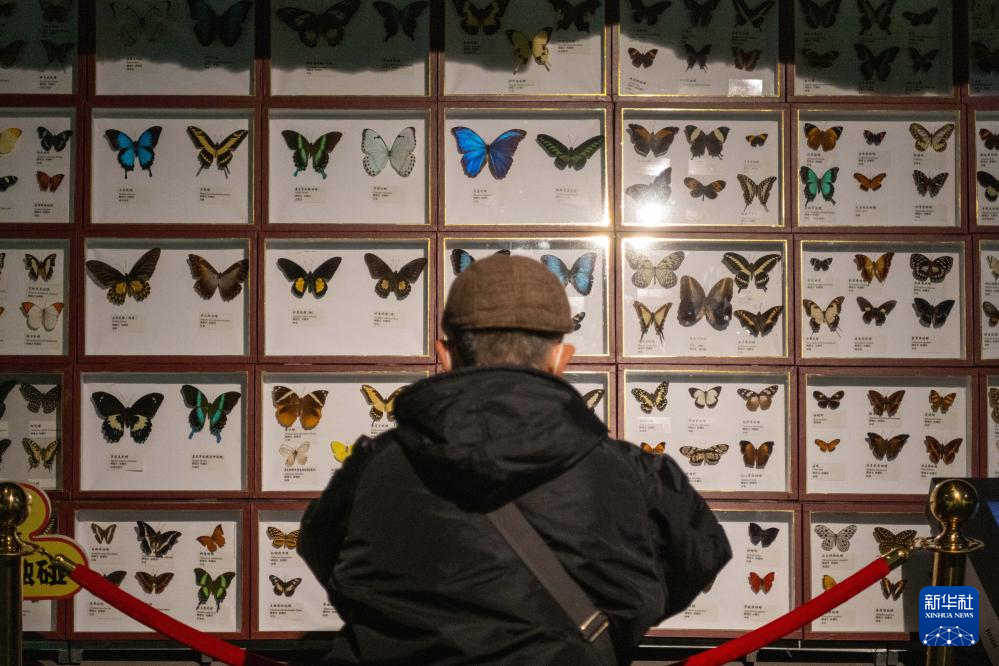 3月21日,游客在中国(哈尔滨)森林博物馆内拍摄蝴蝶标本。