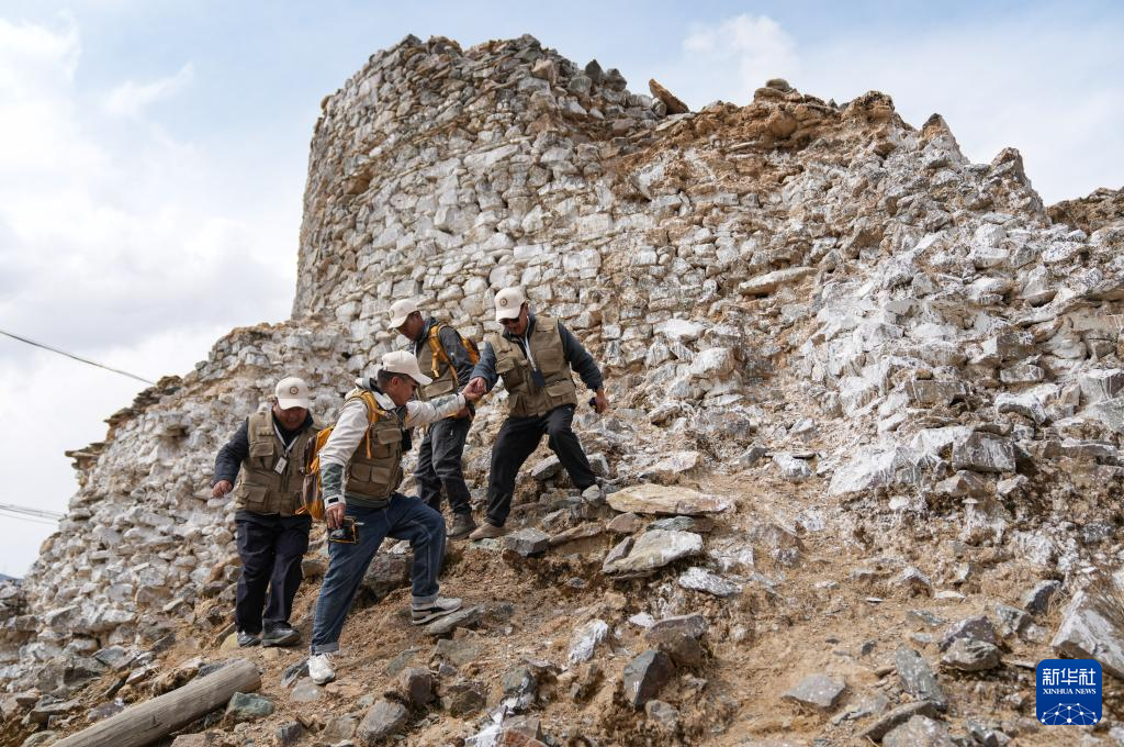 4月11日,普查人员在曲果岗塔群遗址现场开展数据采集。新华社记者 晋美多吉 摄