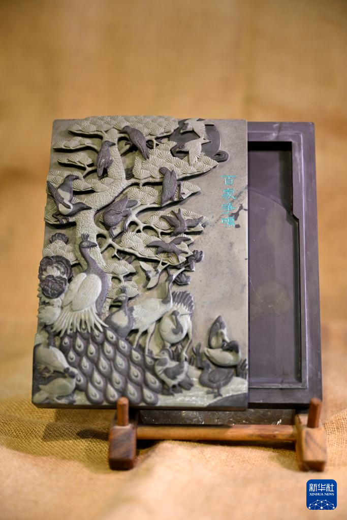 这是闫森林的贺兰砚作品(4月15日摄)。