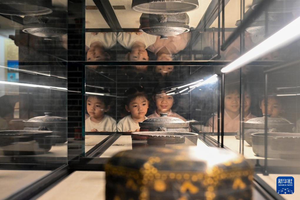 5月18日,小朋友在江苏省兴化市博物馆参观。