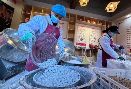 2月9日,在省城钟楼街的晋祠桂花元宵店内,工作人员正在赶制元宵。元宵,不仅包裹着甜蜜的节日味道,更承载着深厚的文化记忆,成为市民们舌尖上不可或缺的“年味儿”。