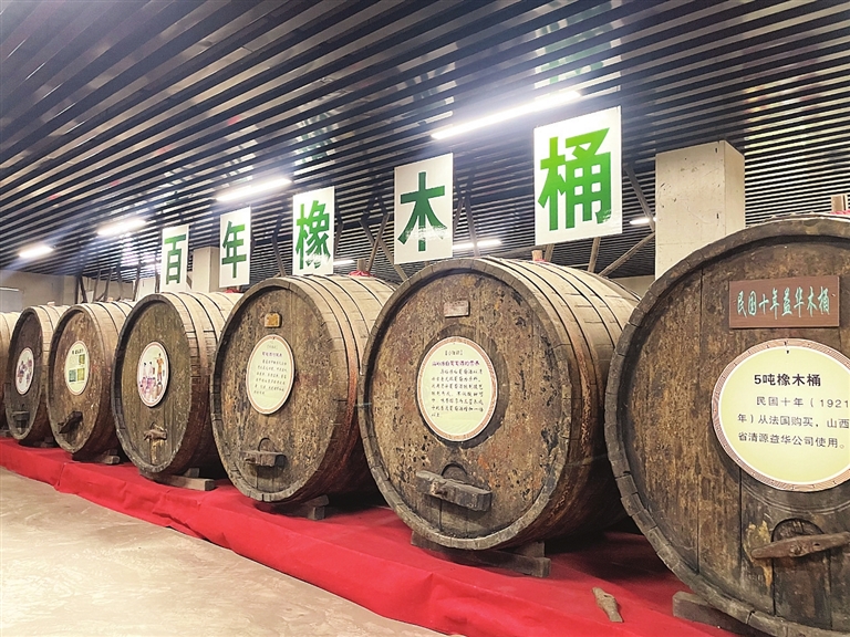 在清徐葡萄文化博物馆的“益华炼白葡萄酒厂”展陈区,8个5吨容量的棕褐色橡木桶整齐排列,其上面铁箍早已锈迹斑斑。“1921年,张树帜、乔锦堂等18人发起创办清源县益华酿酒股份有限公司,从法国购买橡木桶,引进葡萄压榨机、白兰地蒸馏设备,开启了工业化生产葡萄酒的先河。”