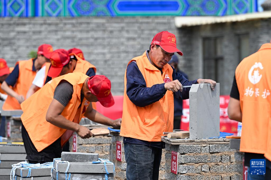 5月26日,选手在泥瓦作文物修复师比赛现场进行比赛。