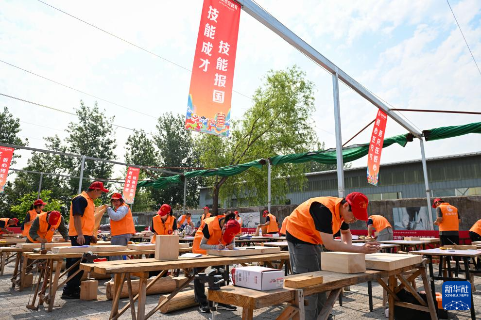 这是5月26日拍摄的木作文物修复师比赛现场。