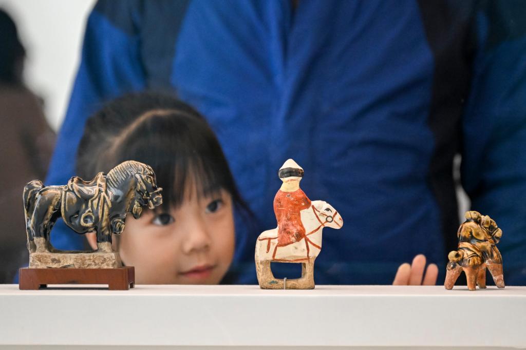 小朋友在“春风骐骥:马年生肖展”上欣赏展品。新华社记者 陈浩明 摄
